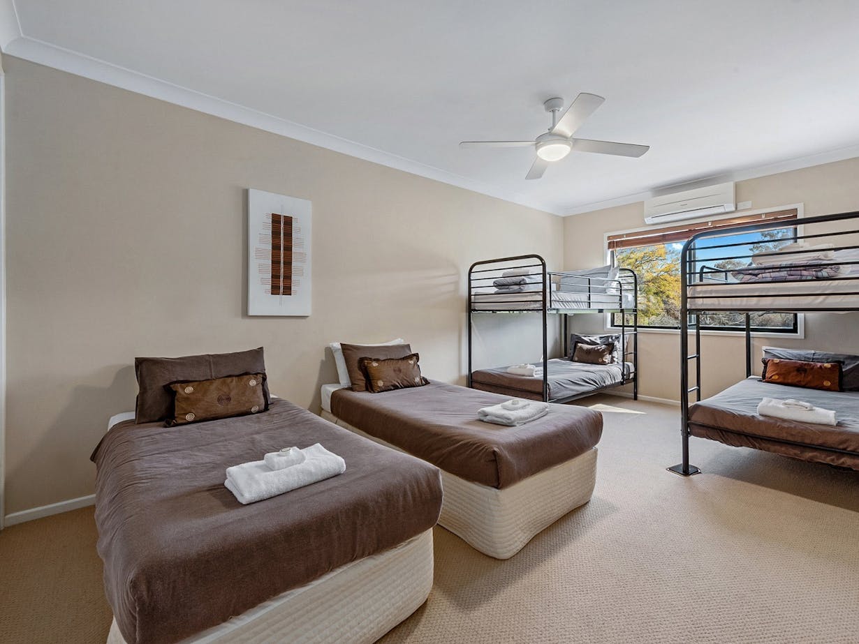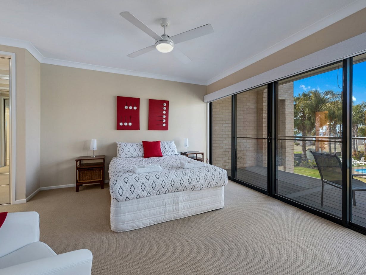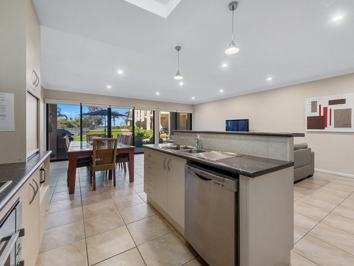 Enjoy your next holiday in the comfort of a luxurious townhouse perfectly positioned on the banks of Lake Mulwala. Elsinor Townhouse 3 is part of a 10-unit complex that shares an in-ground swimming pool, playground and lake views/frontage. Situated close to the main bridge and a short stroll to both Mulwala/Yarrawonga town centres.
