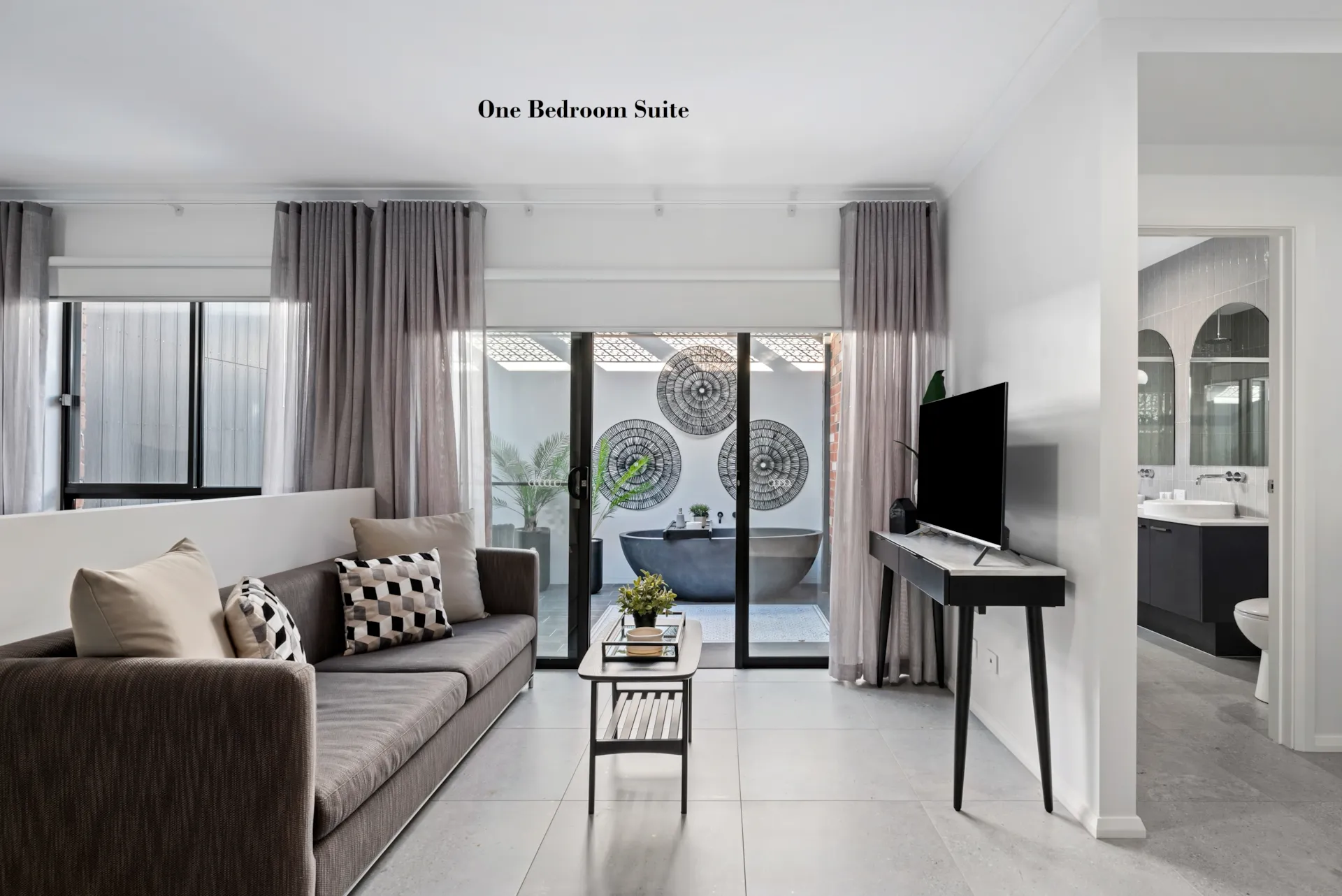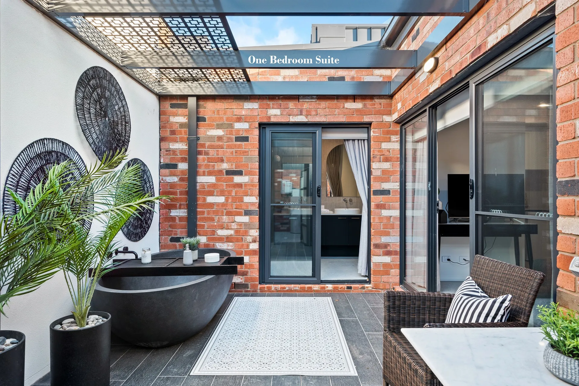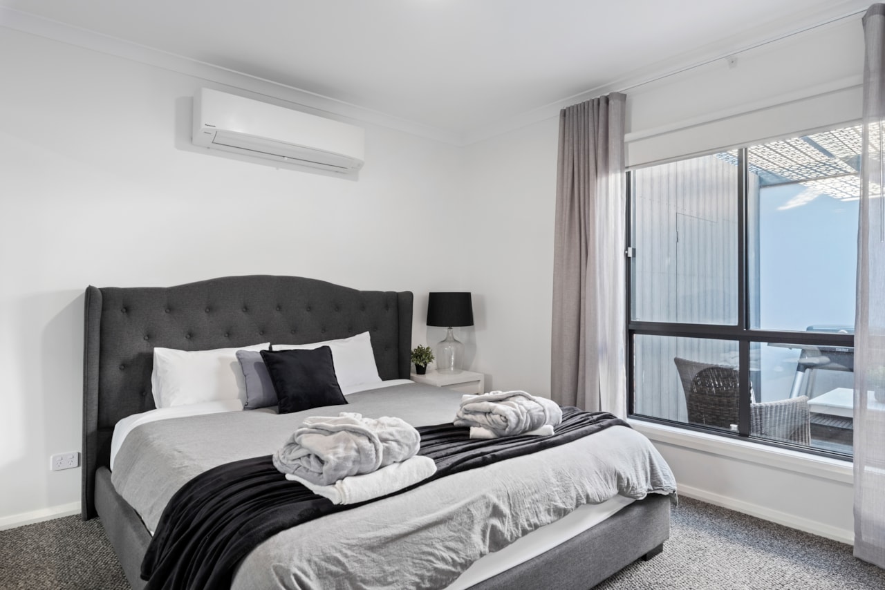 Featuring a plush king bed, a modern ensuite with a double shower, and a handy kitchenette, it’s your own private sanctuary. Unwind in your courtyard with a BBQ, stone outdoor bath, and alfresco seating. With shared access to a solar-heated pool, WIFI and laundry, plus undercover parking and lake access just steps away, this is lakeside simplicity at its most stylish.
