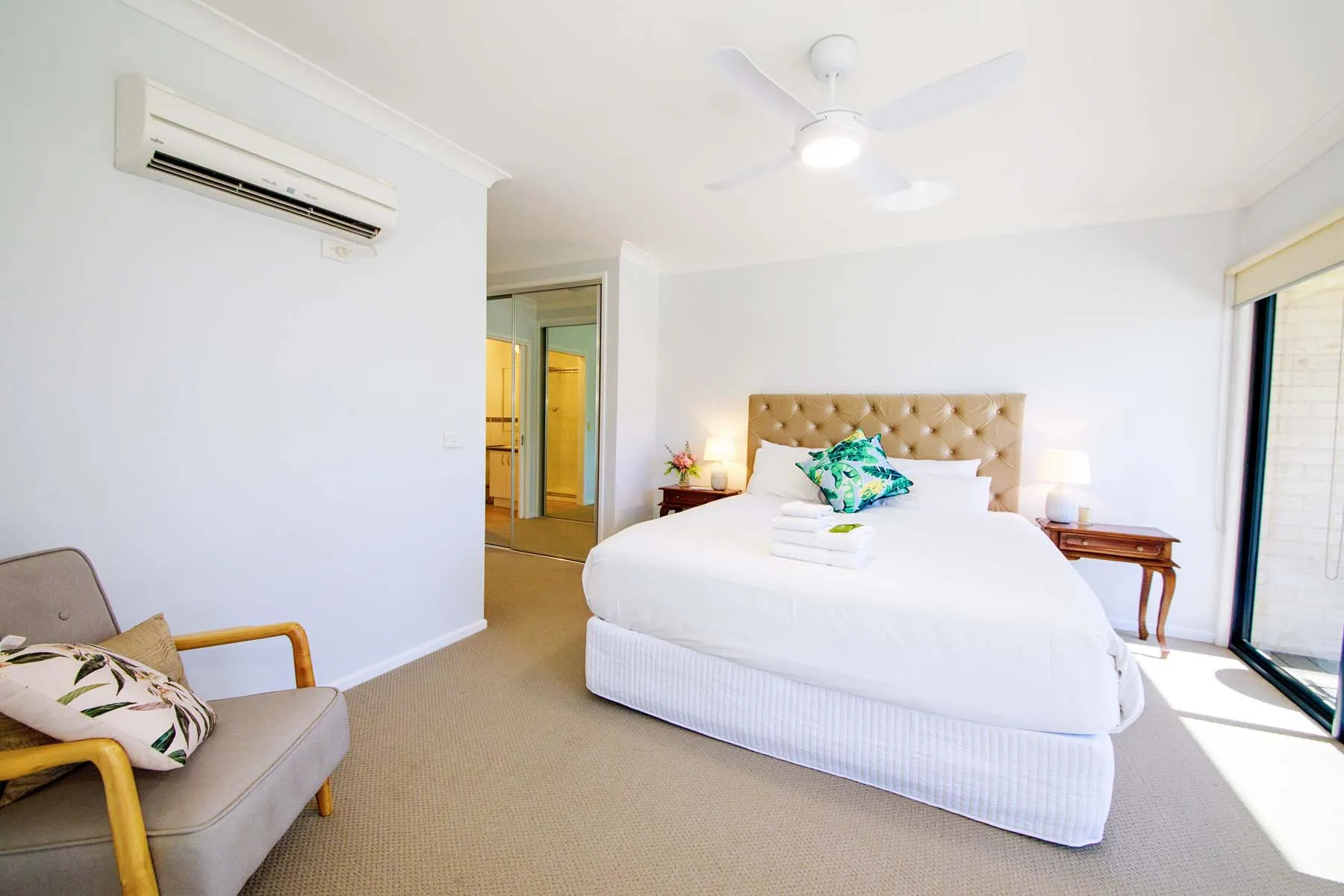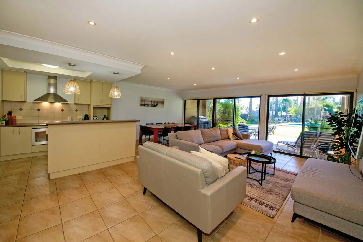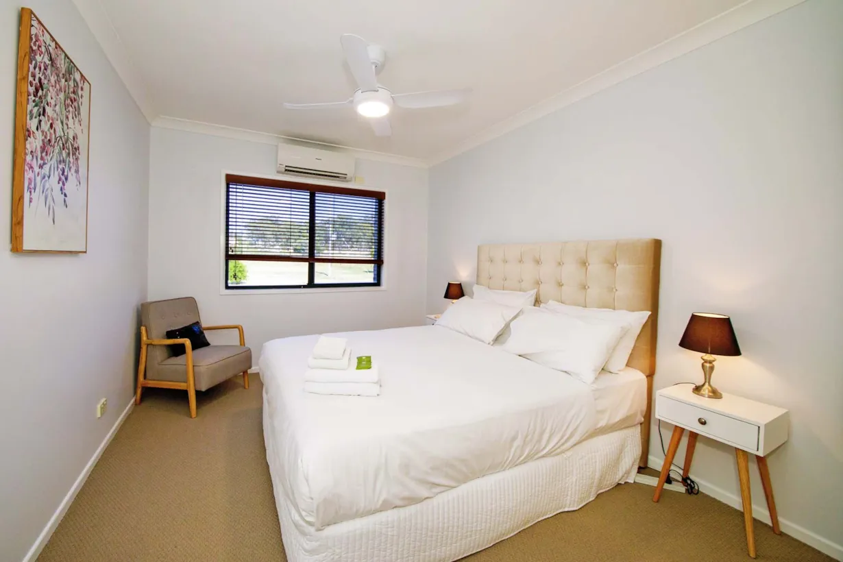 Your luxurious two‑storey retreat on Lake Mulwala. With three spacious bedrooms, two‑and‑a‑half baths, an alfresco patio, private balcony and resort‑style pool, it’s ideal for up to 10 guests. Wake up to lake views, enjoy water-skiing, golf or just relaxing poolside - all within steps of Mulwala’s top attractions. Elevate your next group escape with style, comfort and ease.