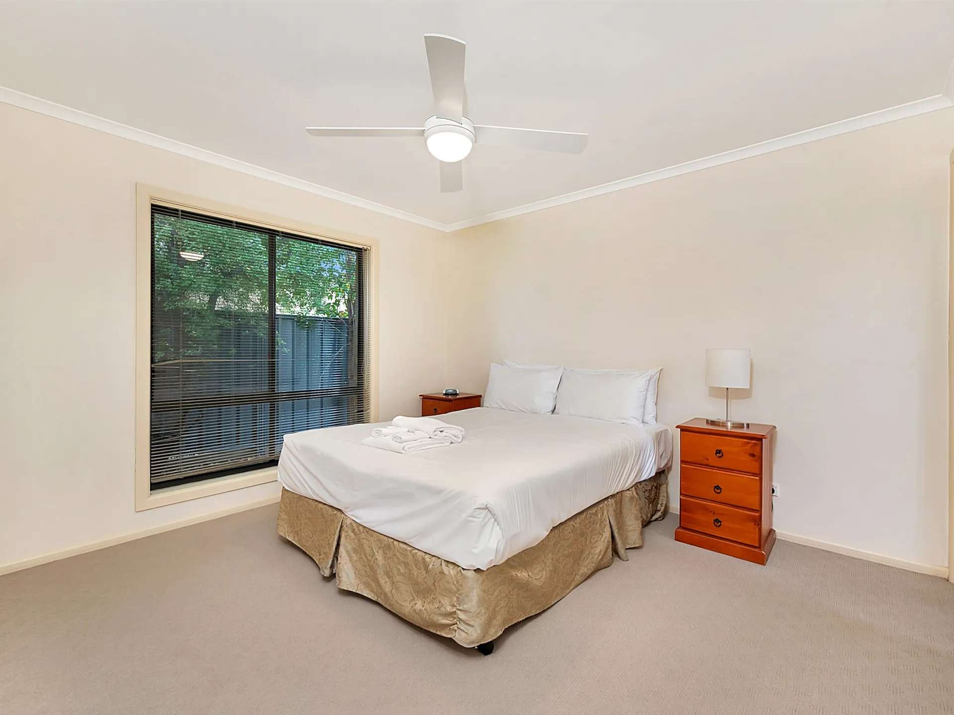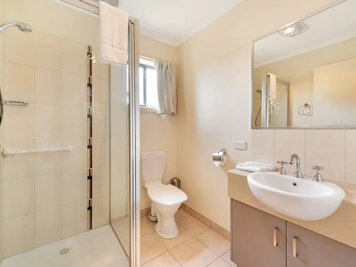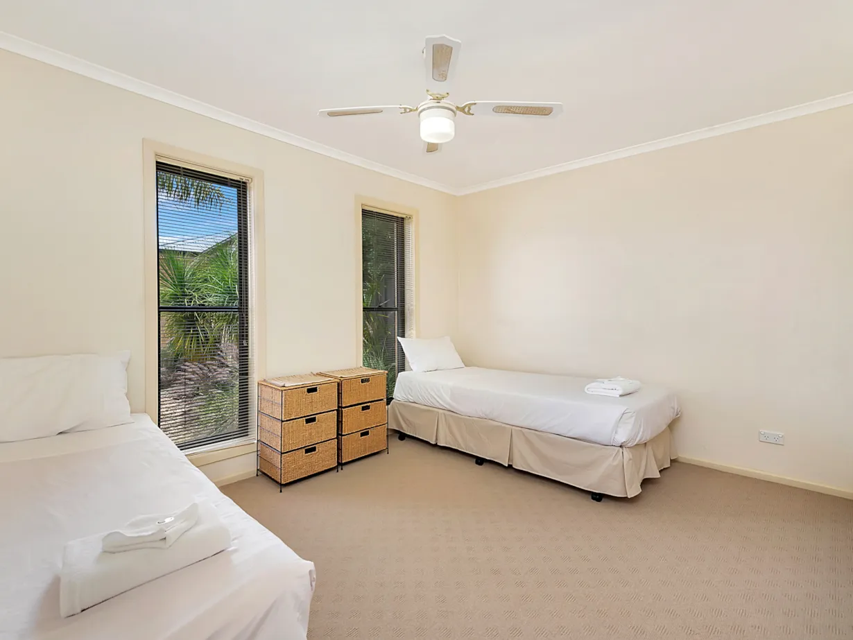 This 2‑bedroom, 2‑bathroom apartment in Mulwala is designed for effortless stays: unwind by the gas log fire in winter, stay cool with evaporative cooling all summer, and enjoy your private courtyard for morning coffee or evening drinks.