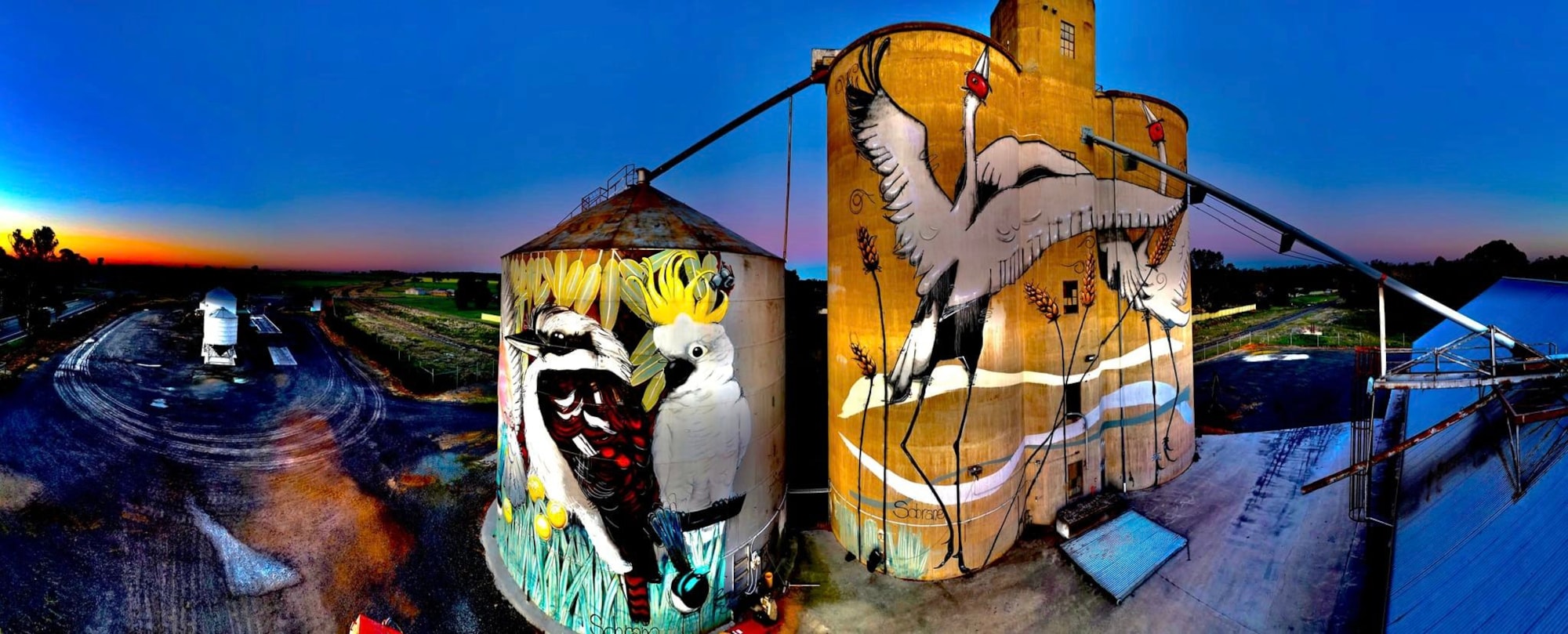 Bright and full of life, the Tungamah silos showcase colourful native birdlife, reflecting the natural beauty of the surrounding landscape.