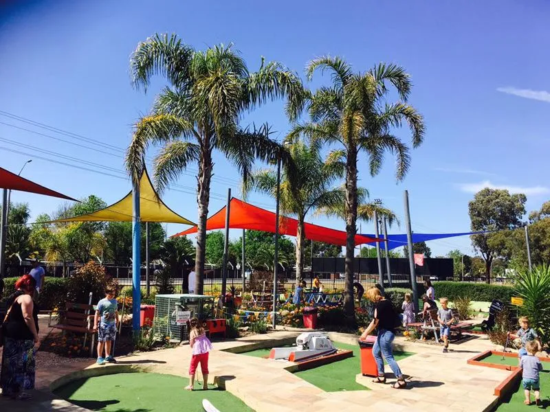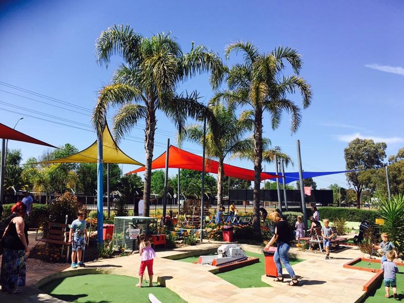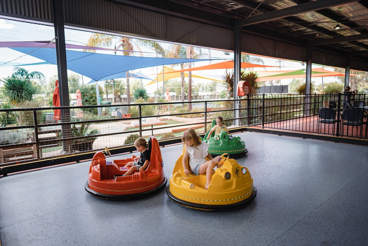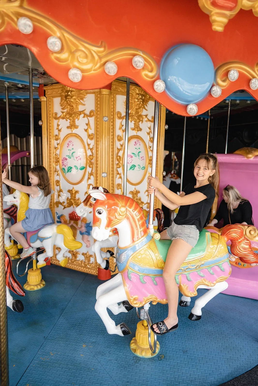 We have an 18 hole mini-golf course themed on the two towns with a lake and bridge. Also we have carnival rides including Dodgem Cars, Krazy Kars, Carousel, Teacup Ride, Mini-train and other rides for smaller children.