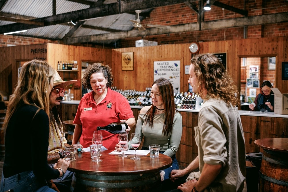 Pfeiff­er Wines historic winery cellars and century old Sunday Creek Bridge is the perfect location to immerse yourself in nature and simply enjoy the sound of silence. The air is clean and fresh, the skies are tall and there is plenty of space to enjoy an afternoon drink in a unique Australian setting.